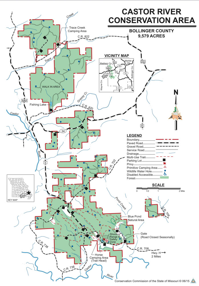 This is a general map of the Castor River Conservation Area. It is HUGE. You can see in the above video as I explain the area on the south end which we visited for this day trip on October 27, 2024. We looked at the two camping areas, the shoot range, and tried to find Blue Pond Natural Area to no avail. Then we visited the Sweet Gum Access before driving home. We are sure to come back and check out the rest once we get our camper that we ordered.