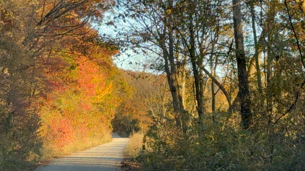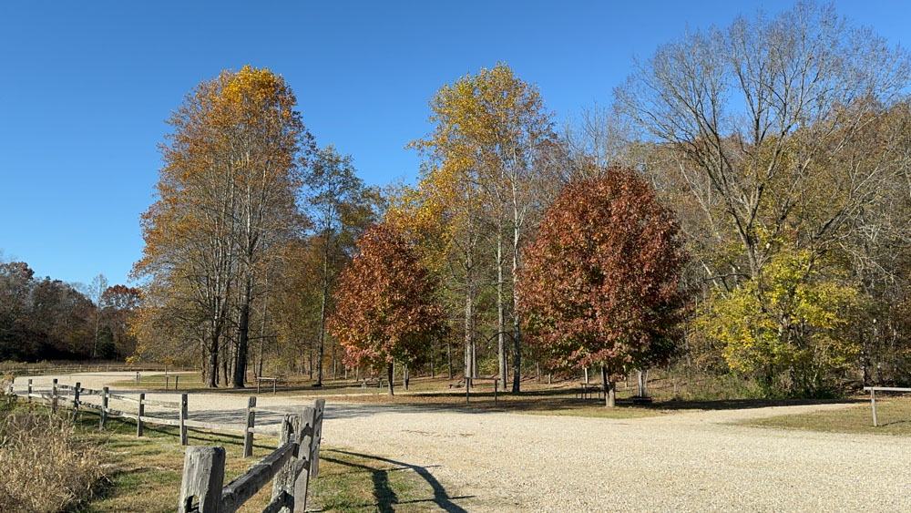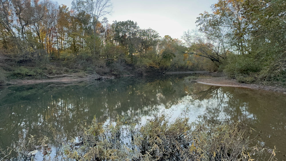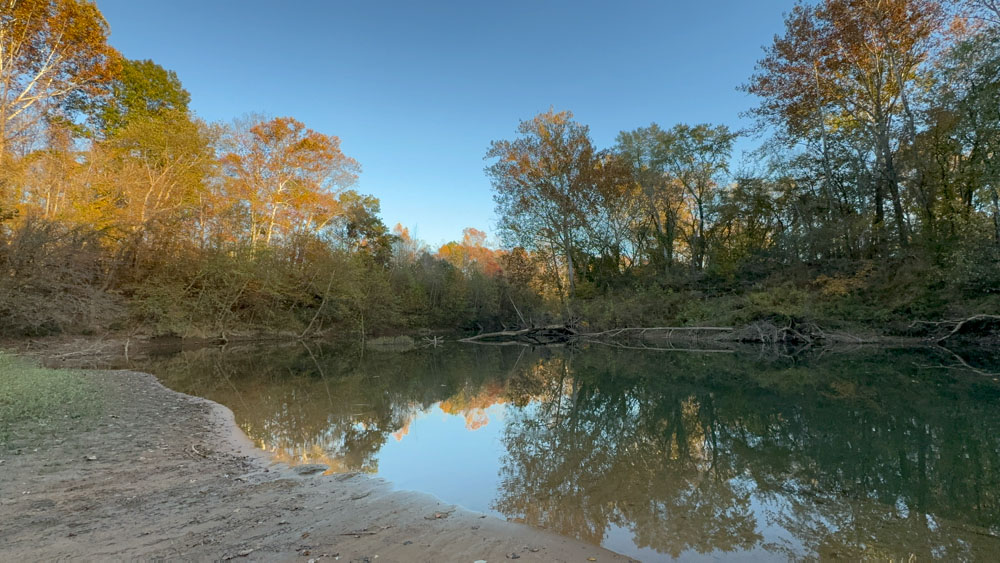 This is a scene from the parking lot at the Sweet Gum Access which was just down the road. I loved the setting sun making the Autumn colors golden.