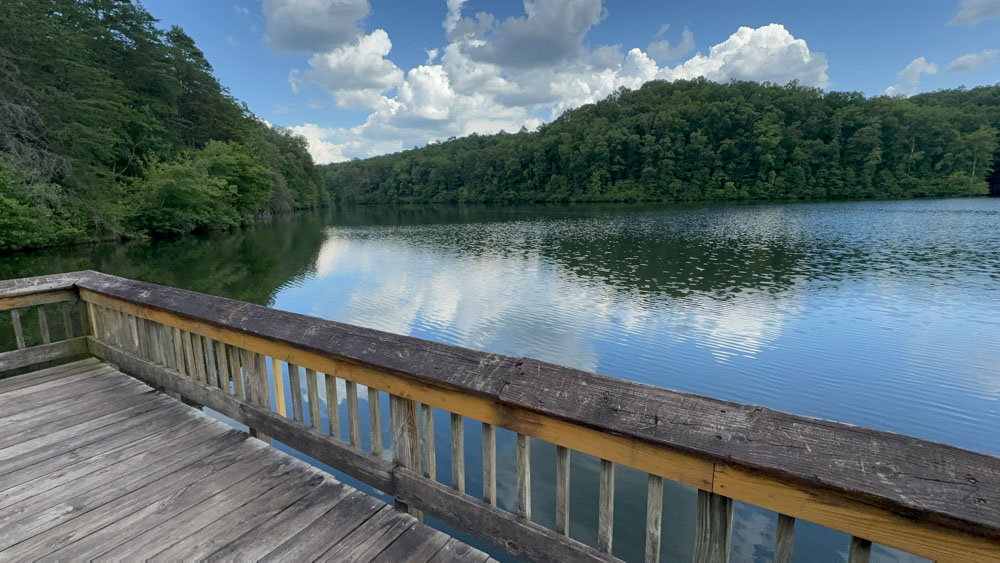 There is a nice pier on the lake.