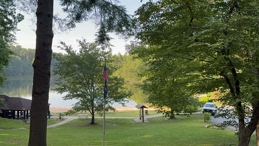 Since there was no amazing view at the campground, we decided to go over to the lake and make our coffee and tea out of the back of our truck. There is a walking trail around this lake from here, but in the end we decided not to take a morning hike.