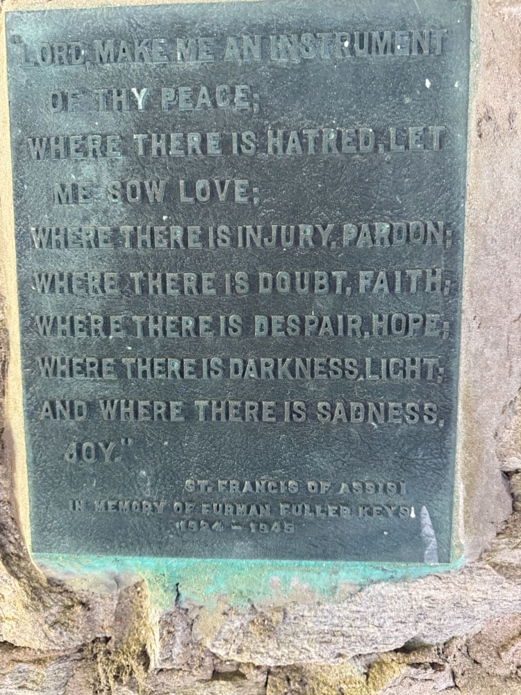 There were stone signs on all of the pillars around the place. I wanted to read them all. I had hubby go around and take some photos of some of them so I could read them later. There were so many that he was not able to get them all. I hope you enjoy reading the below.