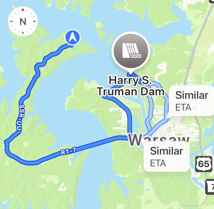 Truman Lake is huge and this map made that very evident. It was quite detailed.