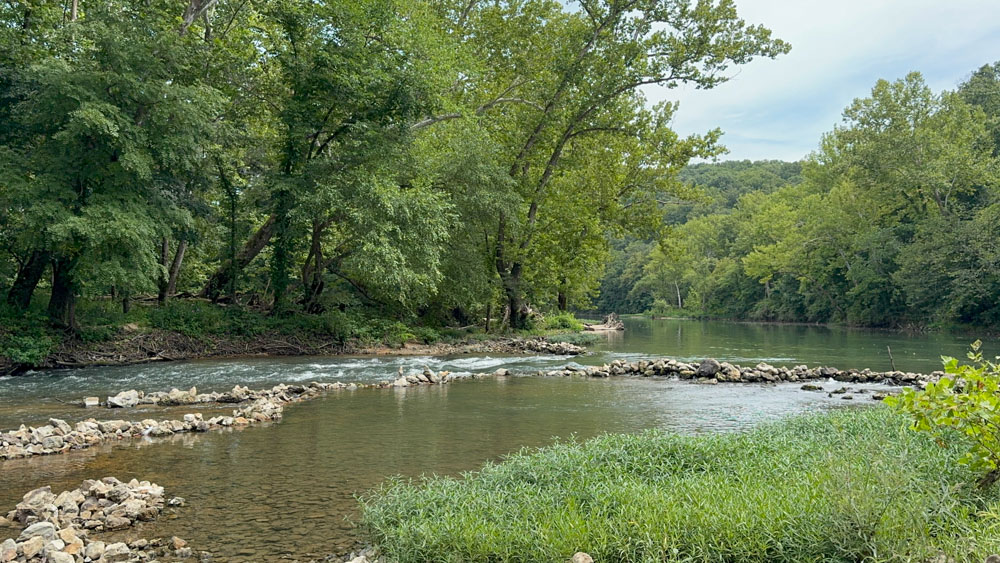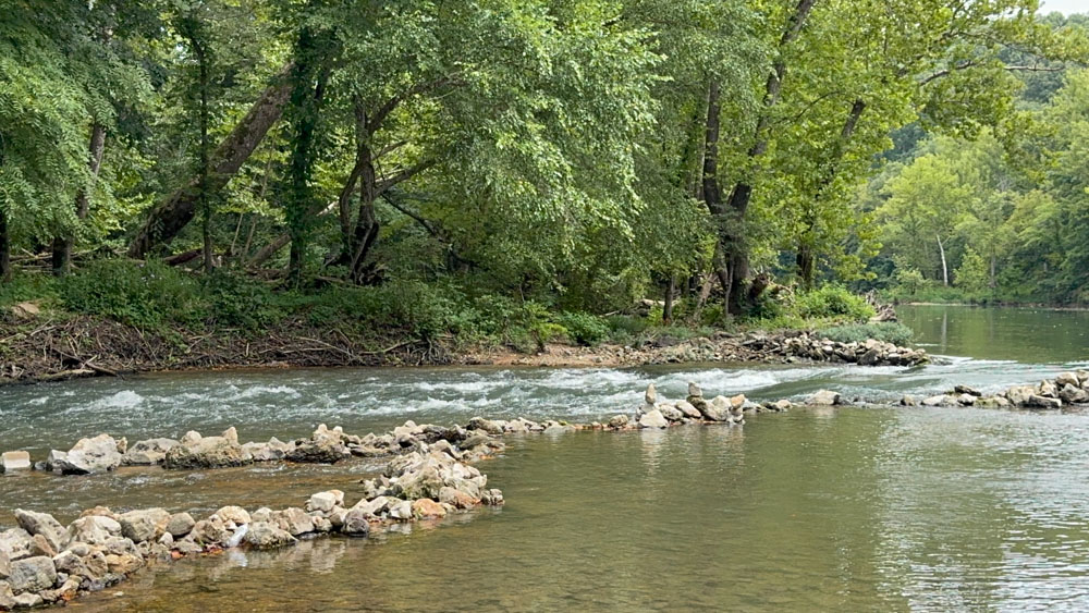 Folks have laid rocks about to create rapids with a beautiful sound and safe places to wade.