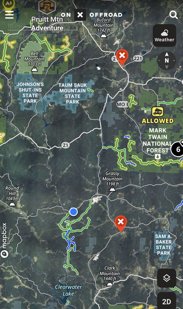 On the OnX app I noted how close were were to many other popular places, such as Sam A. Baker State Park and Johnson Shut-ins.