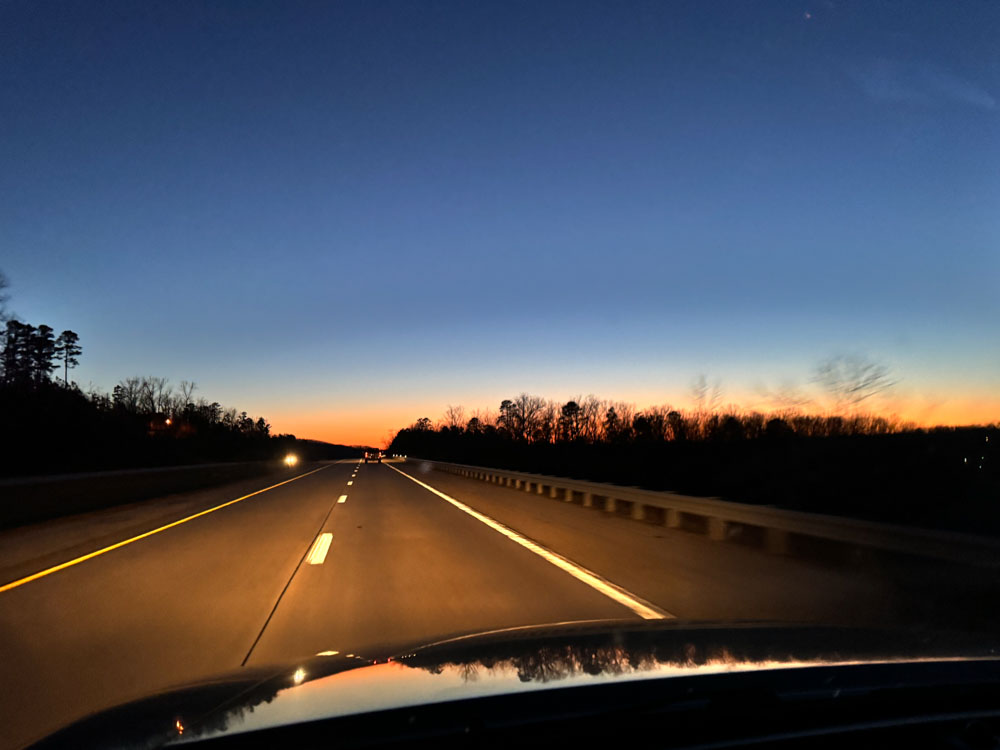 I love driving Highway 60 west at sunset, especially when we hit the straight shots with the hills and valleys and huge wide-open sunset views. We left after work on New Years Eve.