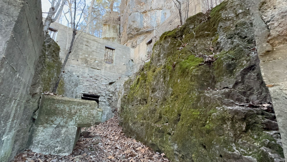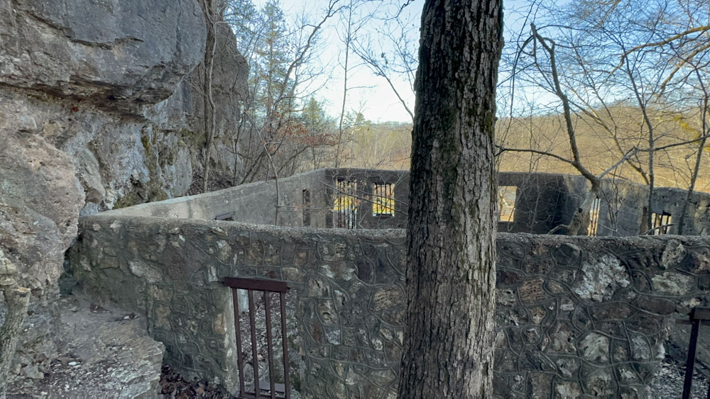 Where did the beds go if there is so much natural rock inside? I guess it is missing a few stories. Maybe this was the basement. There is an older photo. See this page for Welch Springs.
