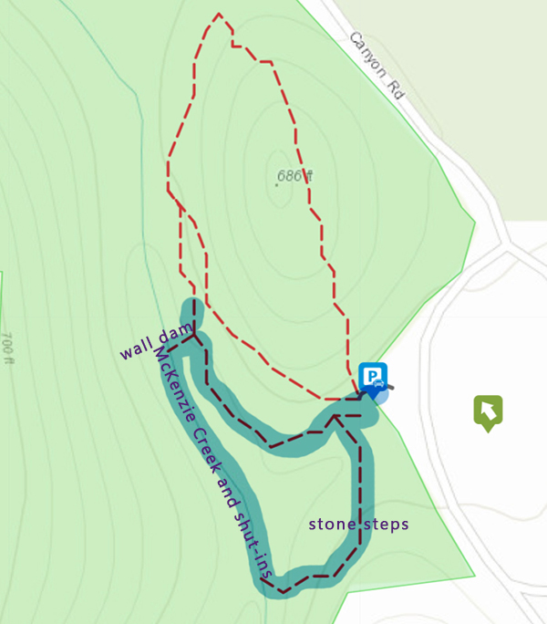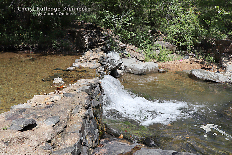 Being older, we were so spent by the time we hiked up the canyon that we had no energy left for the trail. The trail did not look long and we saw a portion of it which looked rather interesting, so maybe next time we will hit the trail before we wallow in the waters. The map on the website is easier to follow than the map for printing. The blue area is where we traveled, first down the the creek and then turning upwards to the wall dam and then back to the parking lot. In the above video, you can see where we come off the wall dam and begin down a trail and turn back. This area can be seen on the above map which I have added text.