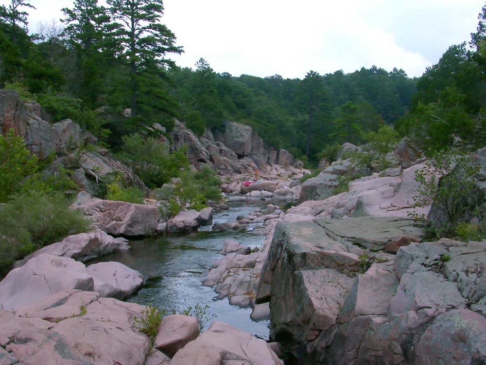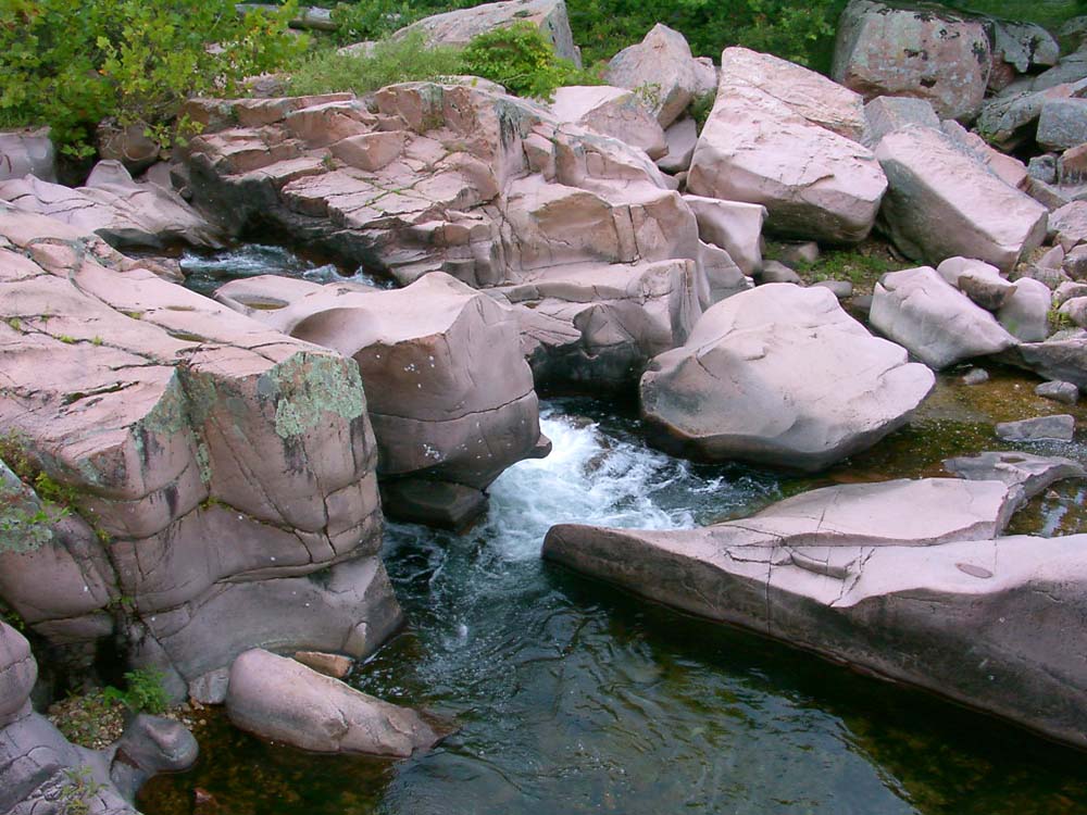 Note that the rock is pink. There is a phrase "pink rock" that is used as a nickname for Castor River Shutins.