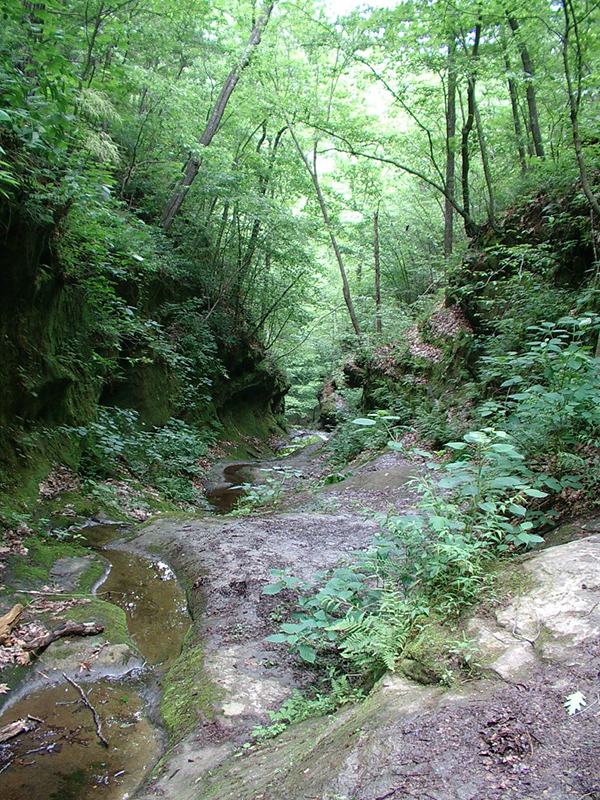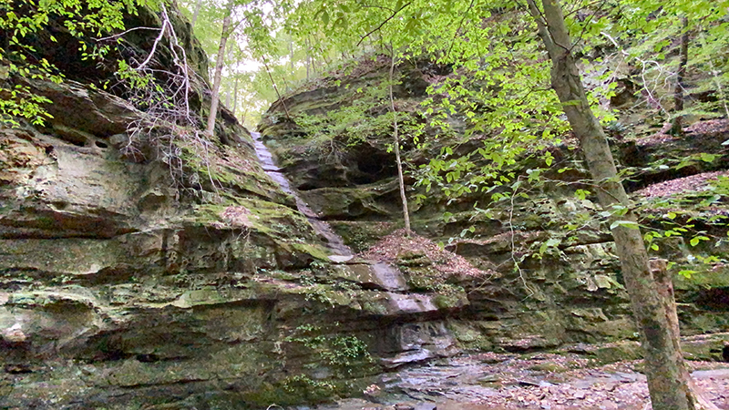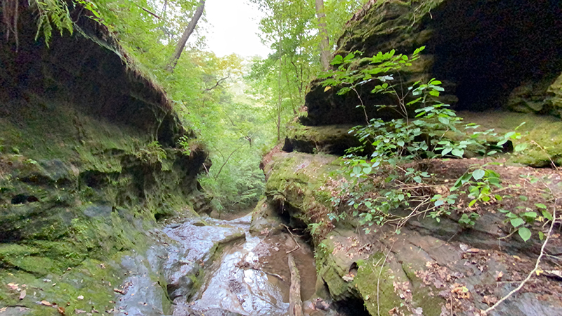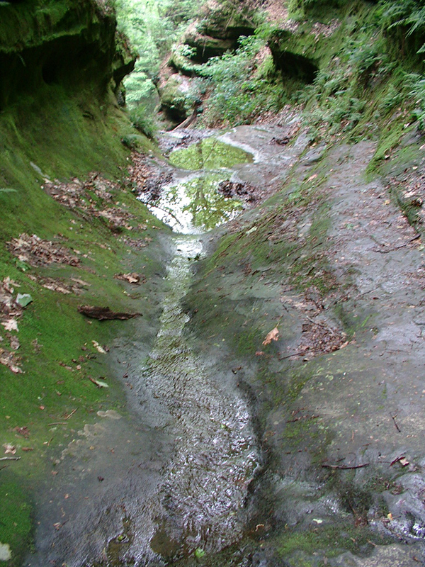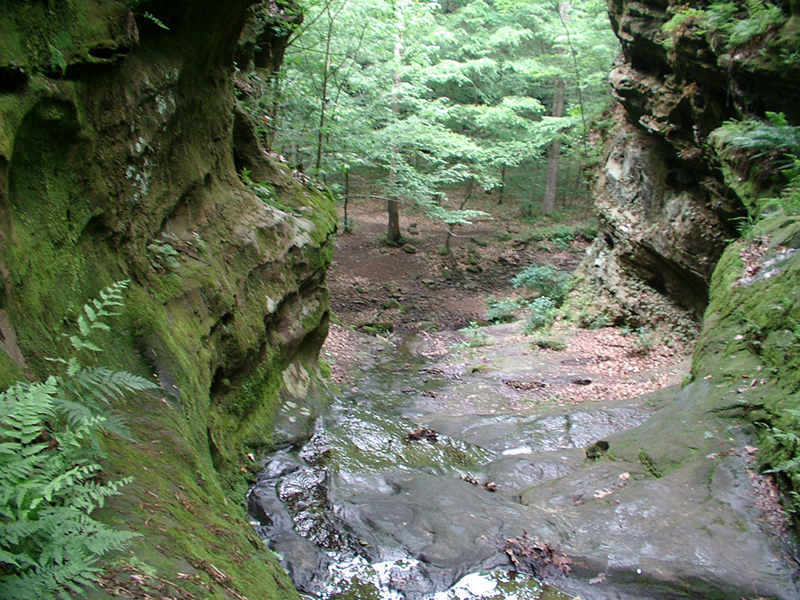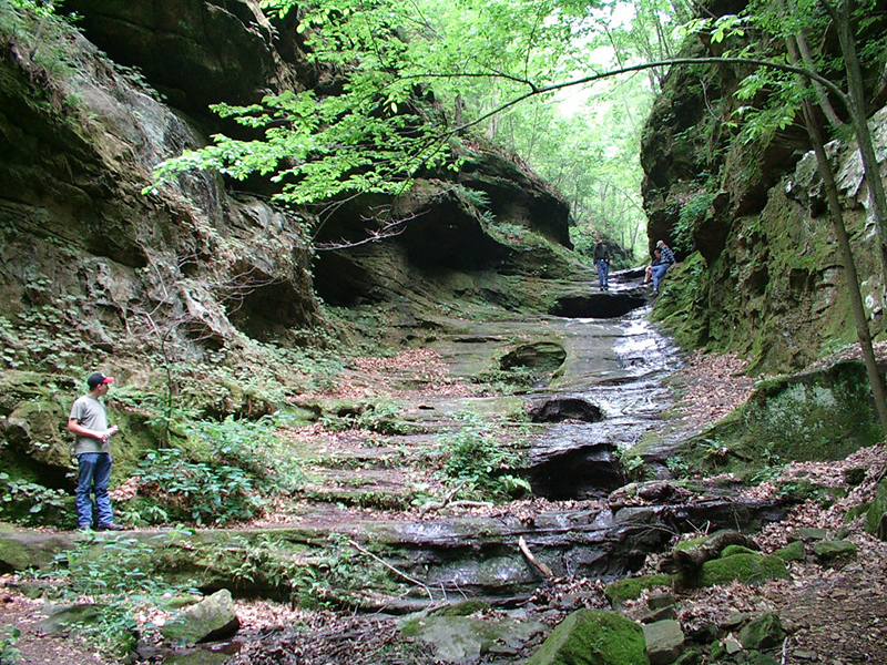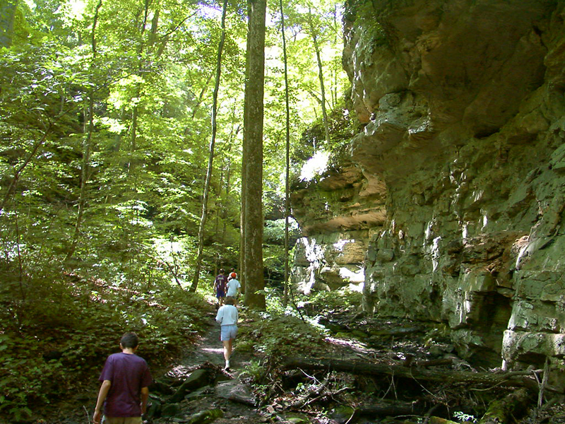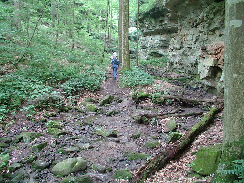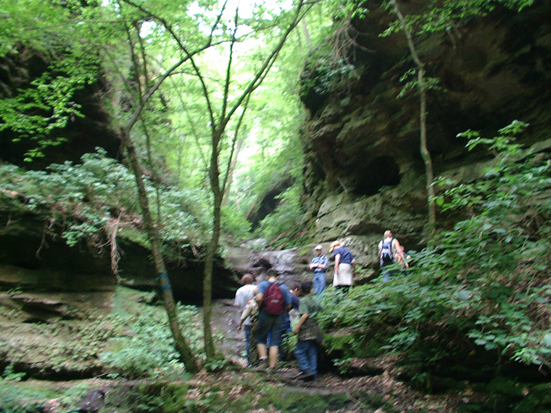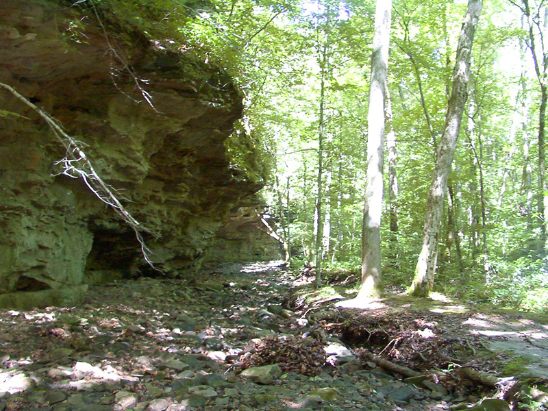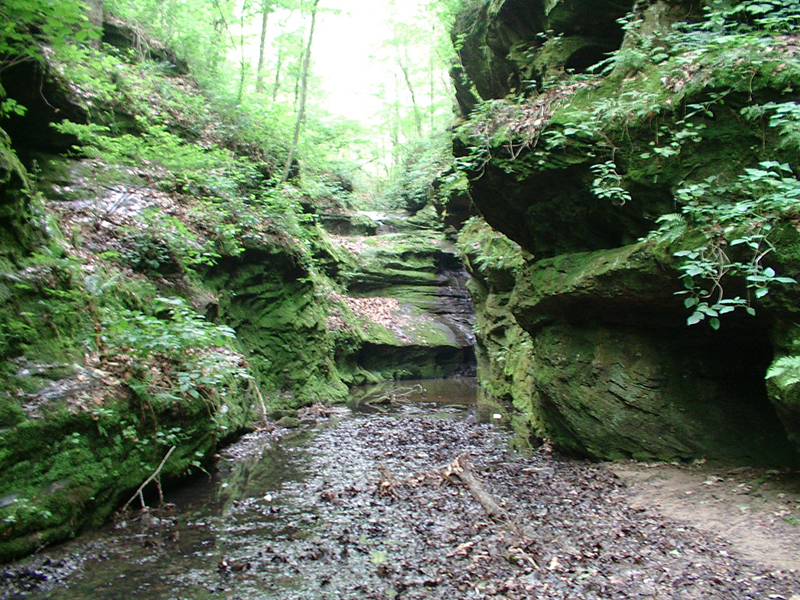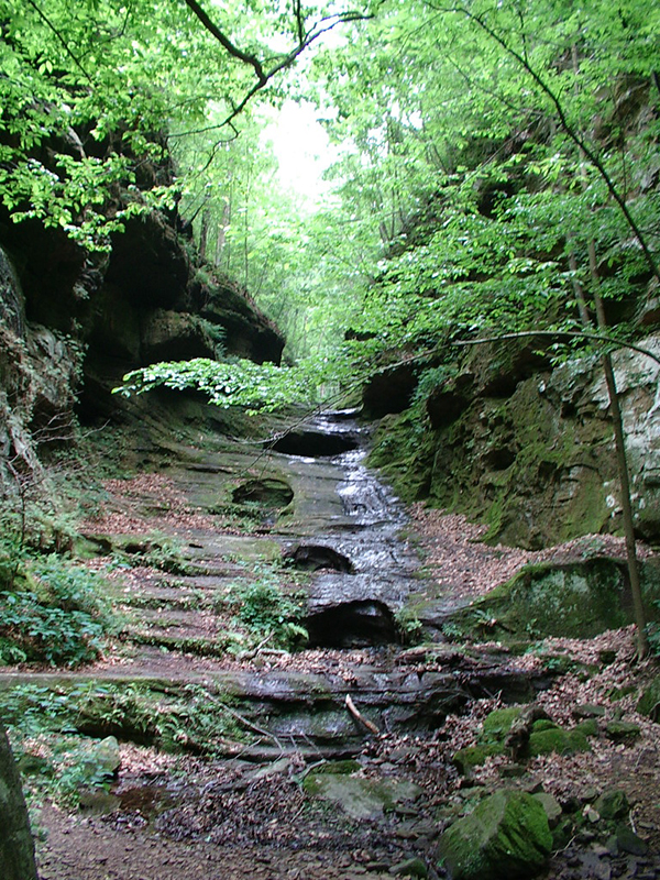 This trail is in Southern Illinois near Pomona. It is not hard to drive too and has a lot of parking available. There are two teirs to the parking and most people miss the entrance to the trail from the lower parking lot and head down the upper parking lot entrance near the bathrooms. When I was first shown this trail by the boy scouts, we started on the lower entrance and that is the way I prefer to go. I cannot imagine hiking the loop from the other direction, but many people do. I think it is more difficult the other direction because that canyon would be more difficult to climb down than up.