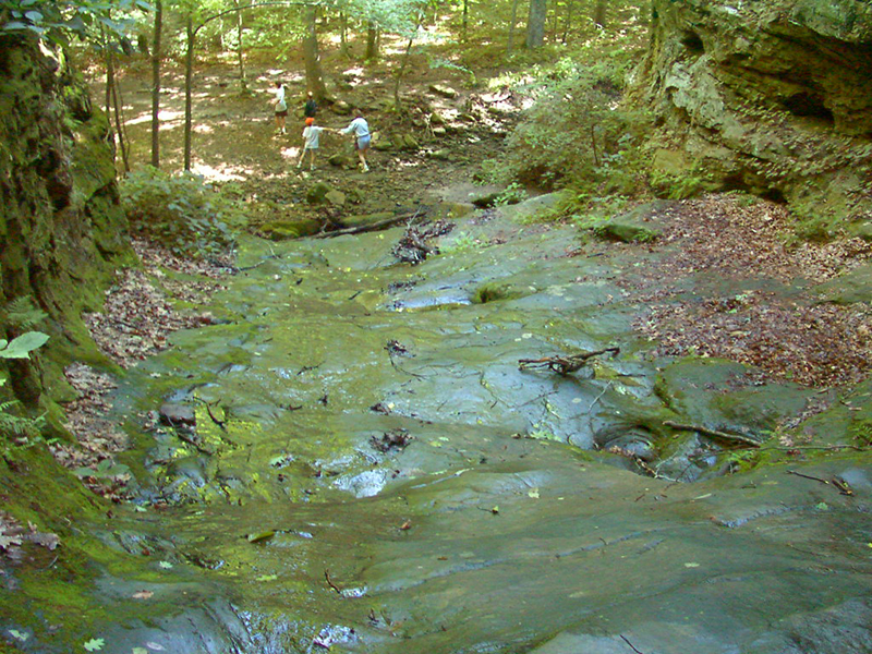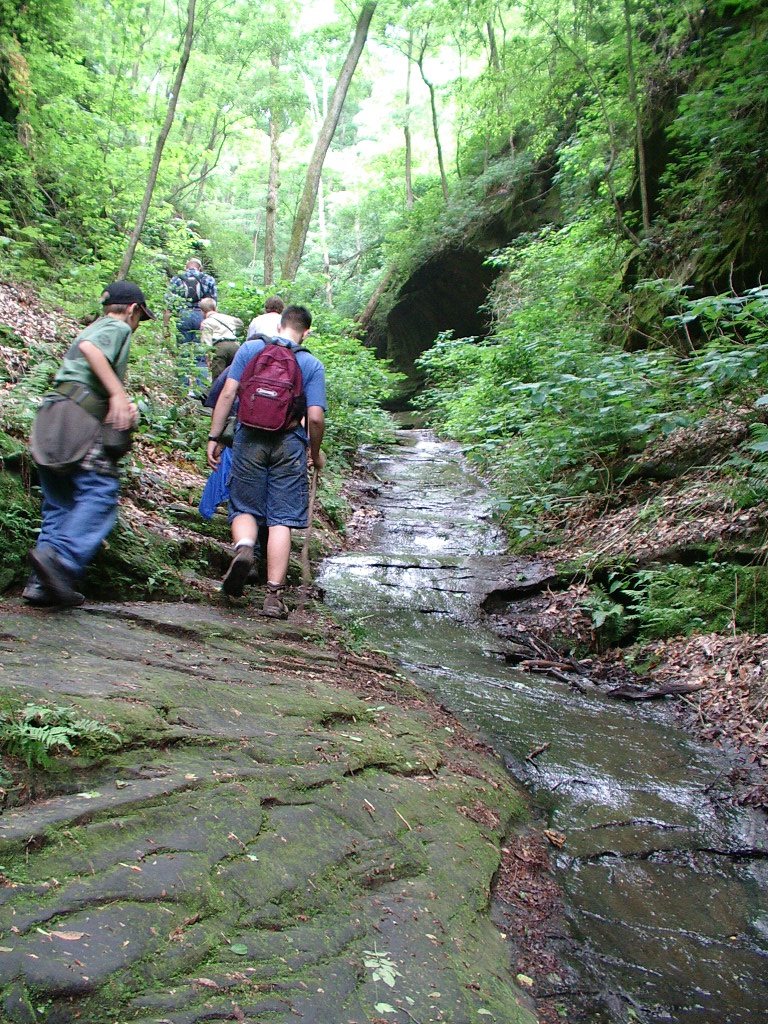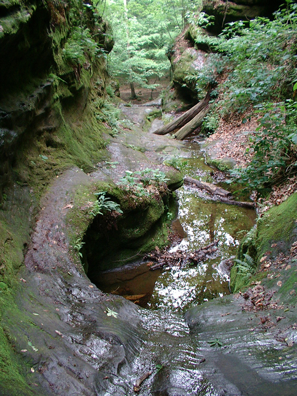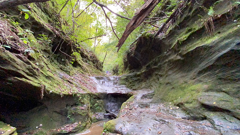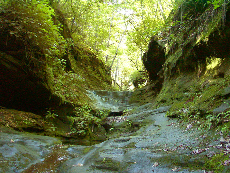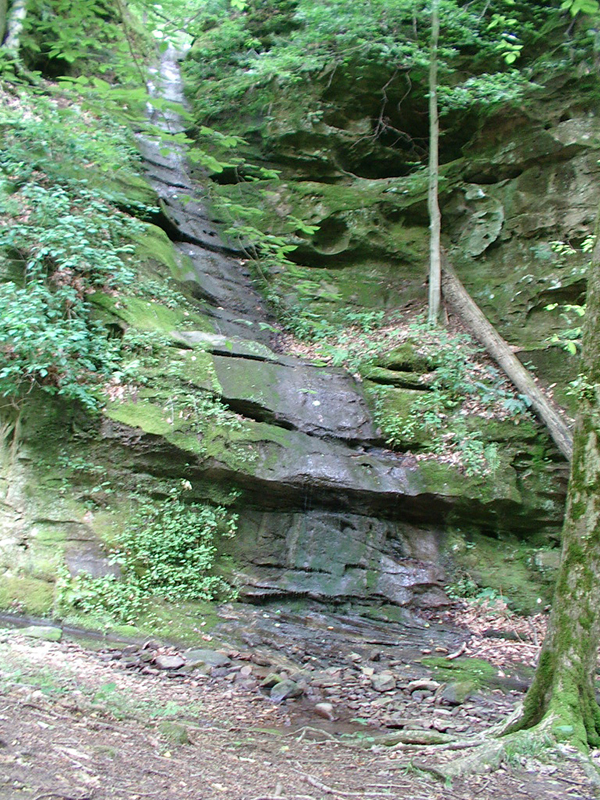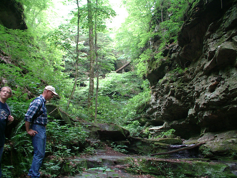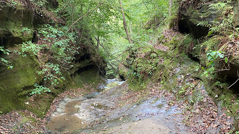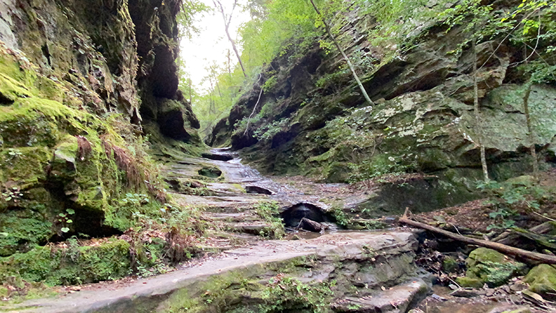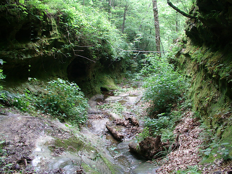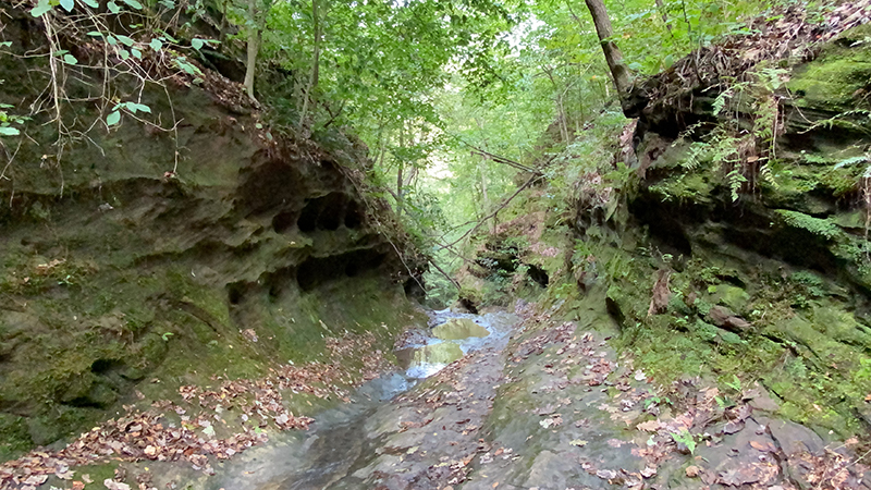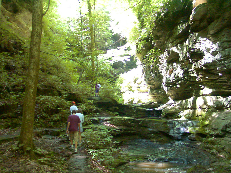 This trail is in Southern Illinois near Pomona. It is not hard to drive too and has a lot of parking available. There are two teirs to the parking and most people miss the entrance to the trail from the lower parking lot and head down the upper parking lot entrance near the bathrooms. When I was first shown this trail by the boy scouts, we started on the lower entrance and that is the way I prefer to go. I cannot imagine hiking the loop from the other direction, but many people do. I think it is more difficult the other direction because that canyon would be more difficult to climb down than up.