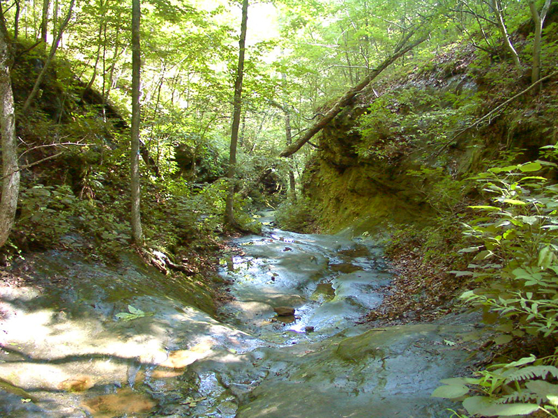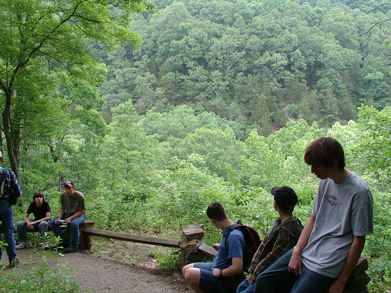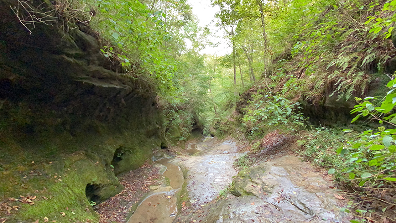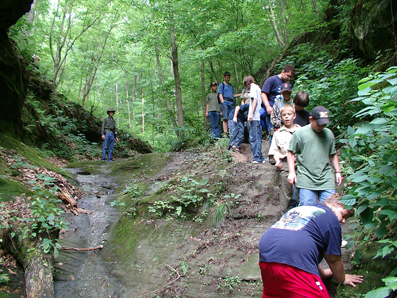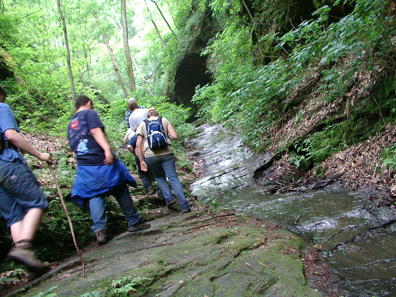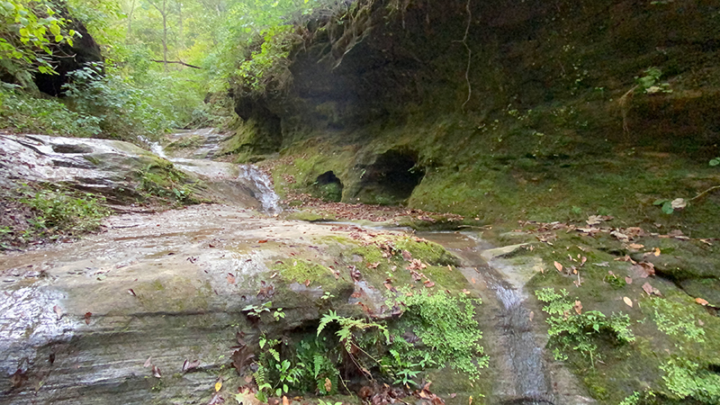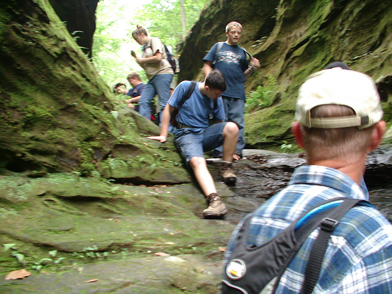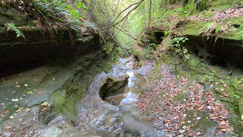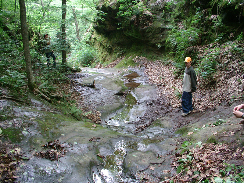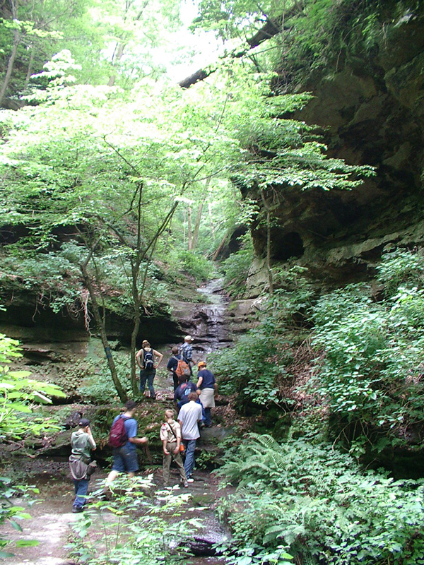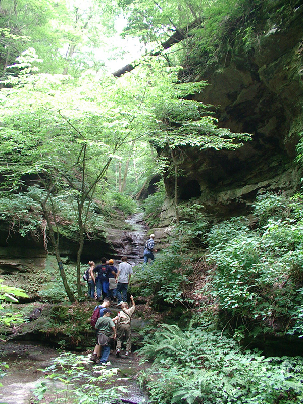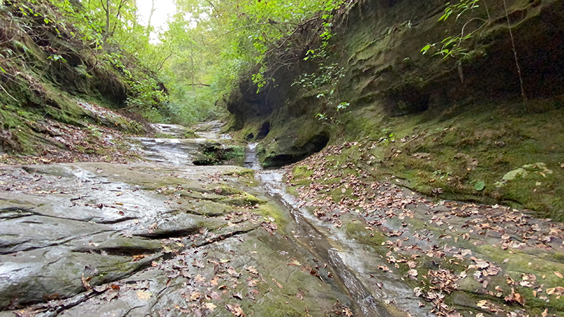 This trail is in Southern Illinois near Pomona. It is not hard to drive too and has a lot of parking available. There are two teirs to the parking and most people miss the entrance to the trail from the lower parking lot and head down the upper parking lot entrance near the bathrooms. When I was first shown this trail by the boy scouts, we started on the lower entrance and that is the way I prefer to go. I cannot imagine hiking the loop from the other direction, but many people do. I think it is more difficult the other direction because that canyon would be more difficult to climb down than up.