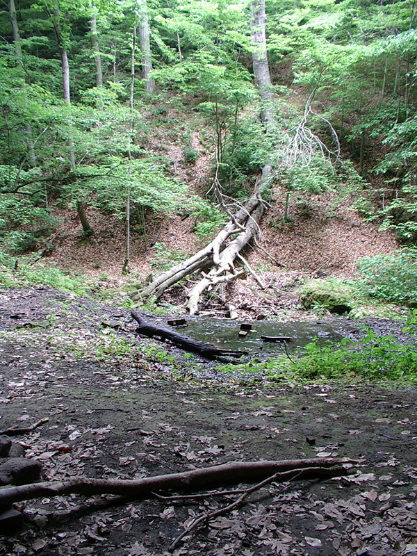Along the bottomlands is this waterfall. The water was not flowing so much on this hike, but it does flow more during the Spring.