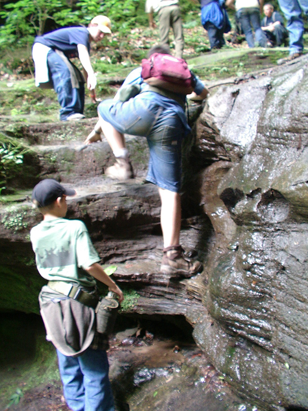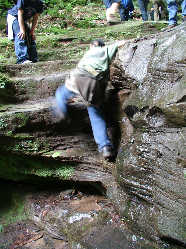 Water does run through the canyon and the rock is slippery, so it is important to stress careful steps. Be sure your footing is secure before lifting the other foot.