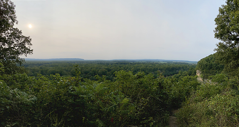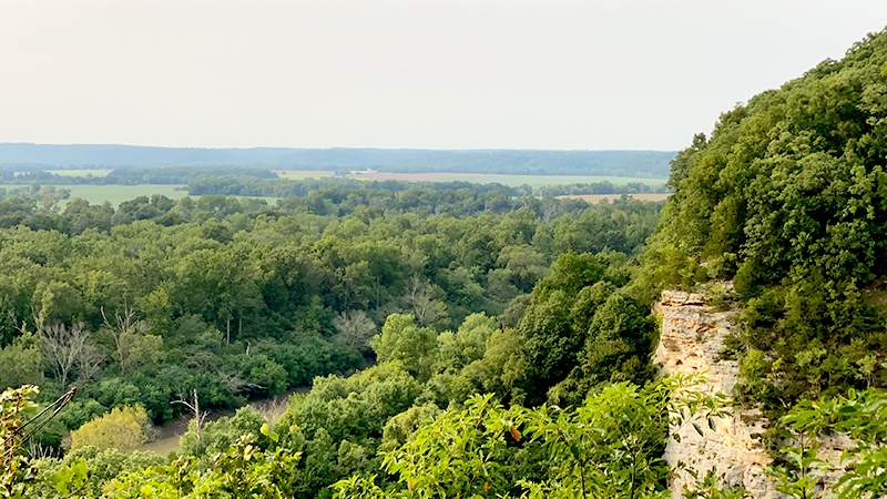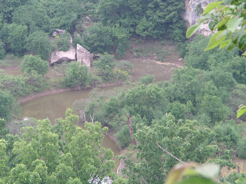This is the view from the overlook. You can go down the trail from the overlook, but I have never gone down there as I am always exhausted by the time I reach this part of the trail. The Big Muddy River is below and it is a tributary of the Mississippi River. I understand there is a cave like structure on the side of that bluff.