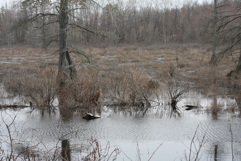 We visited on February 29, 2020, and even in the Winter weather we enjoyed the Refuge. I would think it changes constantly throughout the seasons. The boardwalk is literally like walking on water! It is quite intimidating, at least for me, as I am aware of the snakes that live in the water. Just in front of the side viewing area in this photo is where we saw a very large turtle. I only saw it well for a few moments before it began to sink down to the bottom of the water. We could still see it, but not very well, and waited a long time hoping it would come back up. Apparently turtles can hold their breath for a very long time. I still want to know the answer to that question.