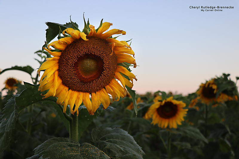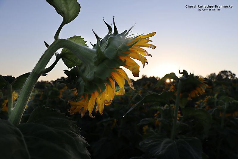 I loved this one for the sunrise peaking through the bend of the sunflower in the background making rays with the sunflower in the foreground pointing towards it.