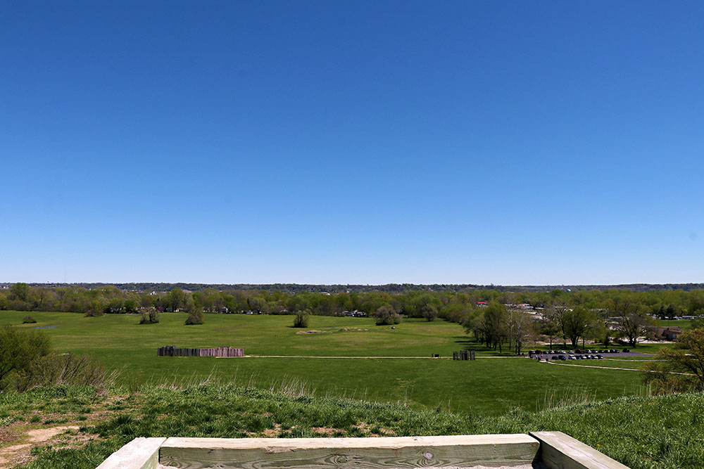 When on top of Monks Mounds the sights in the distance are amazing and there are more concrete blocks with reading information. Here you can spy the arch in downtown St. Louis.