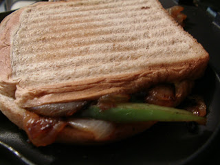 I wanted to attempt a panini with them. I added a half of a green pepper and cooked it down also.
