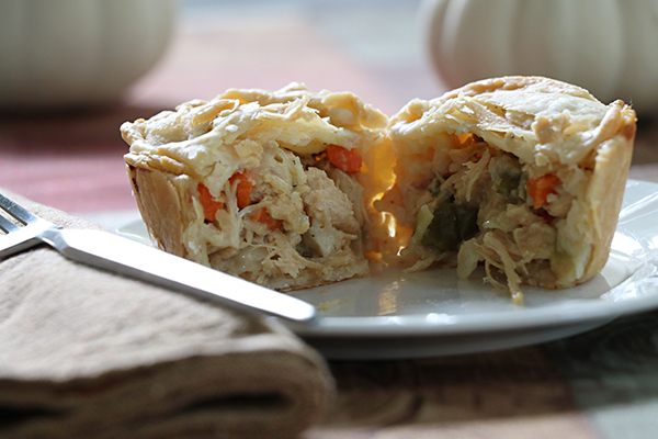 I decided to play with my food this time and am happy that I did! I bought a jumbo muffin tin, first having inspiration for individual egg casseroles, and decided to try it for individual pot pies that can be frozen. It worked amazingly well! It was so easy to quickly reheat them in the microwave.