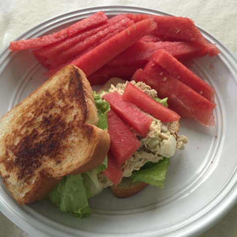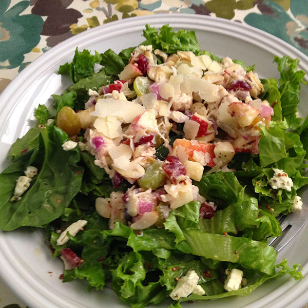 We had this again the next day by adding it to a bed of lettuce, then used the leftover salad dressing from the Pear and BBQ chicken salad before topping with the chicken salad.