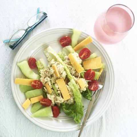Chicken Salad Day 3 - no bread or crackers, but lettuce boats, with honeydew, cheddar cheese, and tomatoes #havefunwithyourfood