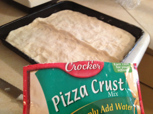 We have had this pizza crust mix for a while now and finally got around to playing with it. We had such fun we cannot wait to play again! So here's lunch!