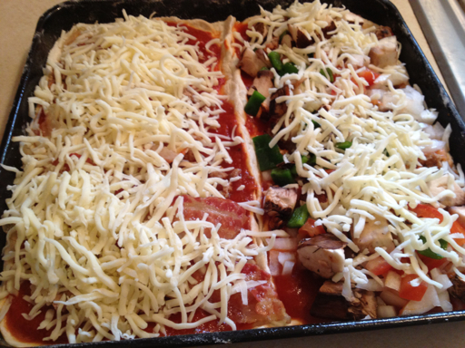We added a four cheese shredded mixture, with hubby getting at least twice as much cheese as my side.