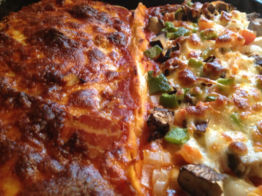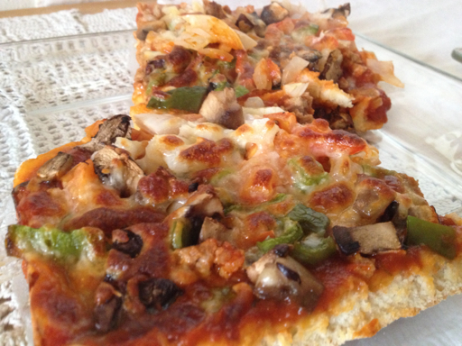 We figured hubby's pizza was probably more calories, with the bacon maybe being more than my veggies, plus he had more meat and cheese. However, mine was more fun!