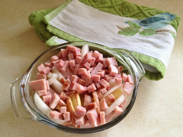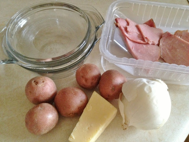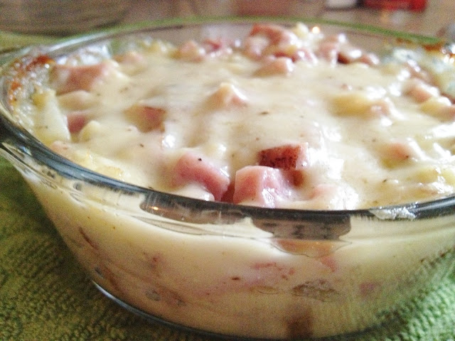 I was playing with food, as I do often now. I rarely use recipes, but just try throwing things together. This time, I had some ham, potatoes, cheese and an onion. I think I was trying to use up the potatoes before they went bad.