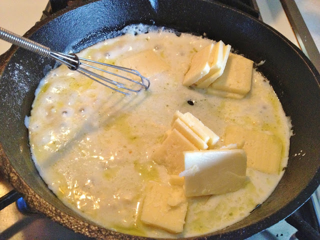 Then I added my cheese, sliced up for easier melting, to the sauce mixture.