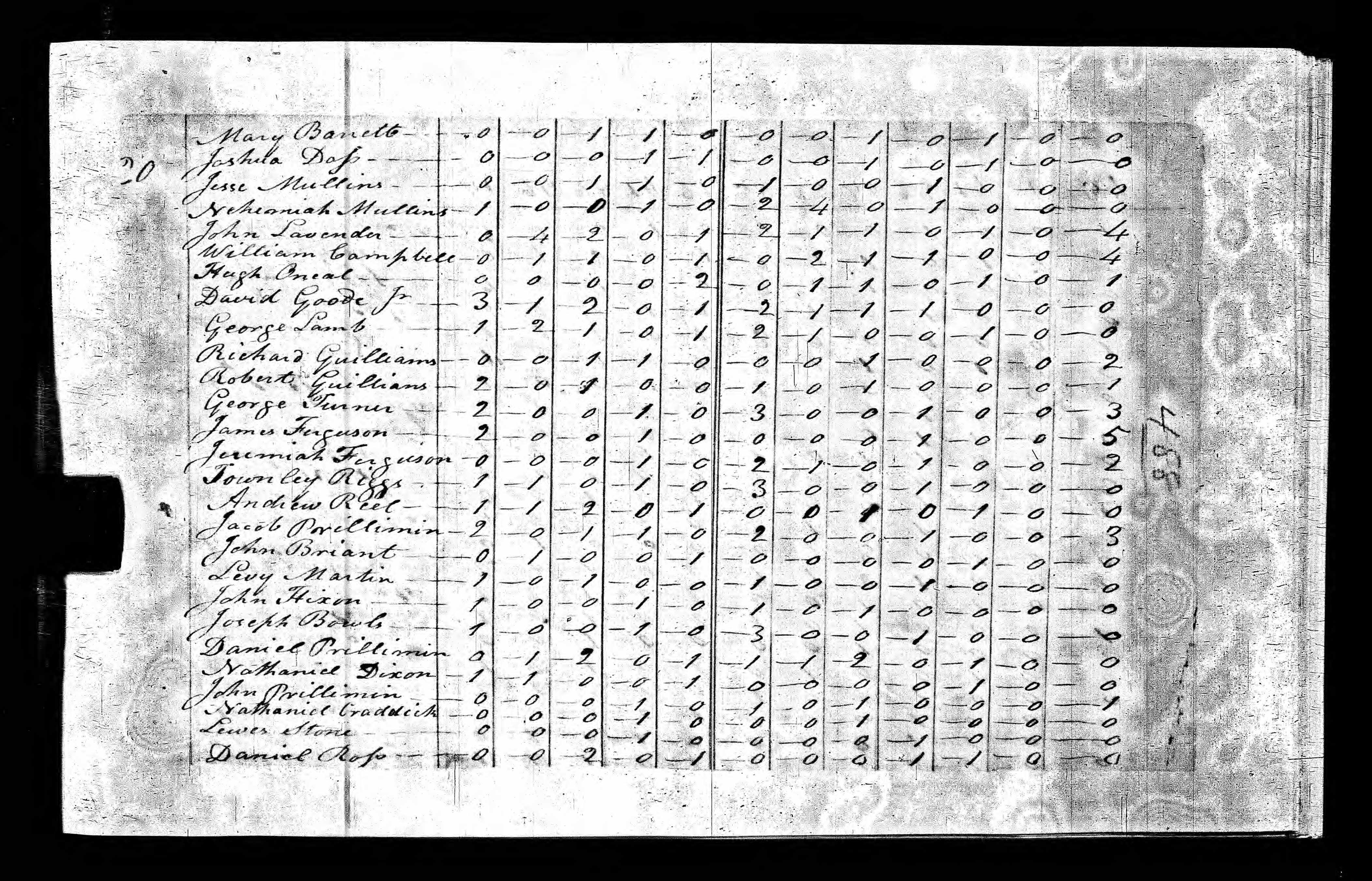 In the 1810 census, Virginia, Franklin County, the household has males ages males 45 and over (1- Daniel) , females ages 45 and over (1-who?), females 26-44 (1 - who?), and males16-25 (2 - Churchill & who?). Daniel is 70 years old in 1810. (This census does not fit for his son Daniel who is 33 years old.) There are 5 in the household and everyone is over age 16.