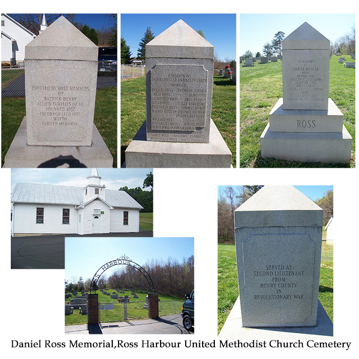 These photos were obtained from Ancestry.com of the Memorial stone that was erected by the Ross Members of Patrick-Henry Allied Families of VA founded in 1952 incorporated 1955.