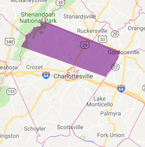 This map shows the purple area where they would have lived on today's map above Charlottesville, Virginia