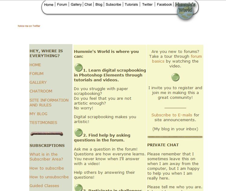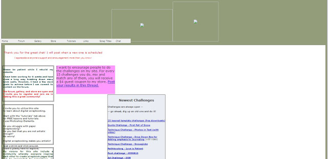 December 2007 - they did not get the header, but I'm sure I have the files somewhere. You can see there is a link to the forum, gallery, and store, ready to open on January 1, 2008. I was working hard at this point to get the site just open. The store closed after just a month as I decided I couldn't do it all. Building the forum and classes was a big job ahead of me, even to just record videos to match all the written tutorials I already had available.