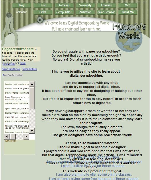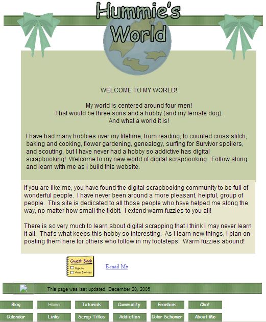 I grabbed a few screen shots of Hummie's World through the years, although you can go to the archive and click around to see more pages.