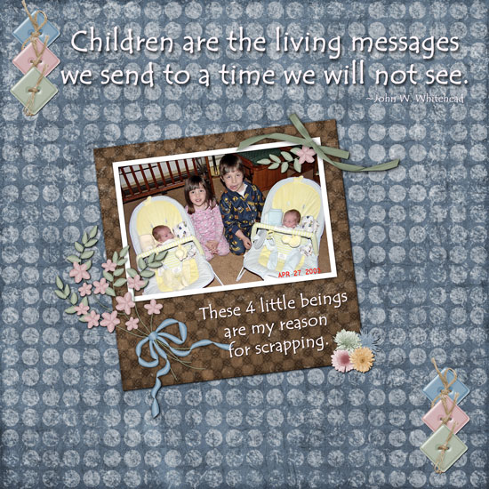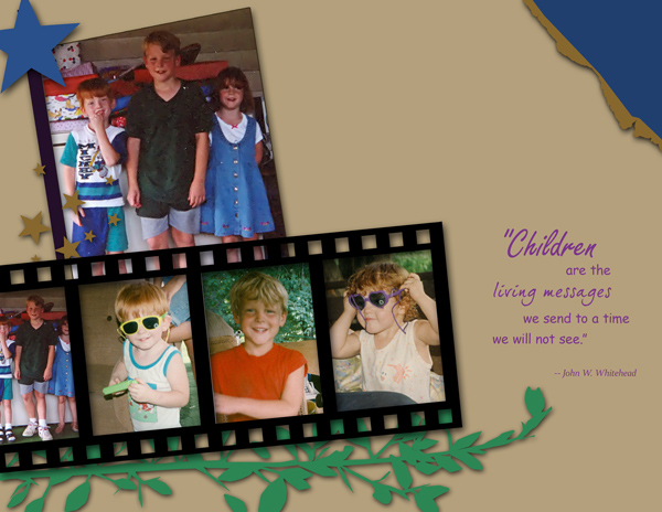 27."Children are the living messages we send to a time we will not see." John W. Whitehead Wow, that's powerful, huh? Isn't that sort of what scrapping is all about too?
