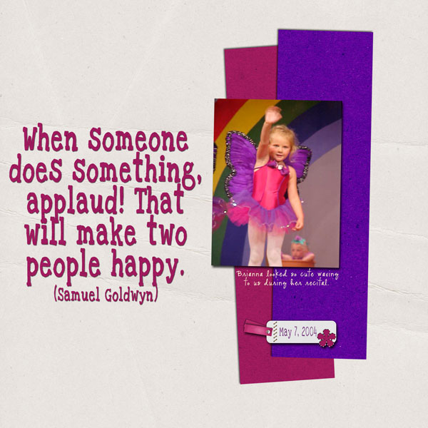 It can be used in so many layouts, from holiday shows put on by our children, to sports, to something as simple as someone giving a gift or doing a small kindness. The subject of the layout can be the one doing the act or the one applauding.