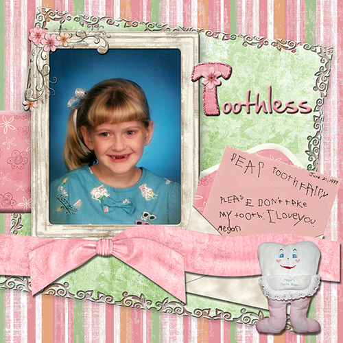 Use this title in a layout: The Toothless Wonder I can see this for shots of babies, shots of first lost tooth, or shots of certain older individuals.