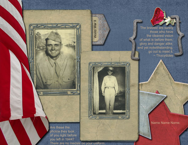 I created this kit to honor my Grandpa who was in WWII. It was one one of the first digital scrapbooking kits I created. I really do miss him a lot. I was blessed to have known him for a very long time.