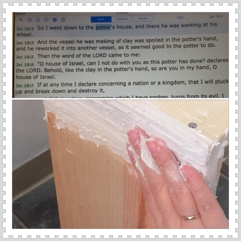 So I am weird like this. I see analogies wherever I go. While I was putting putty on the corners of our project to smooth them out I thought about God's word. When I was done I looked up the verse in Jeremiah 18. "Like the clay in the potters hand, so are you in my hand quote. The edges of our project had holes where the boards were warped and rough edges where the boards met. They were certainly imperfect, just like me. However with my hand I can spread on the smooth putty and make everything OK. With a little sandpaper after it dries, it will be made new. What a great imagery to think of as I consider how God can take the horrible me and make me new.