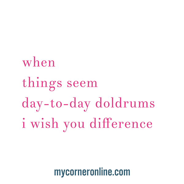 "When things seems day-to-day doldrums, I wish you difference."